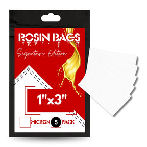 1" x 3" Rosin press bags signature edition by Rosin Bags are a high-quality rosin filter bag, made from FSA approved food grade nylon. Designed for use with a rosin press to filter your solventless extraction rosin. Different micron-grade rosin bags are suitable for different input materials. Maximize your yields and achieve expert-level results and maximum yields, trust in our reliable rosin bags.